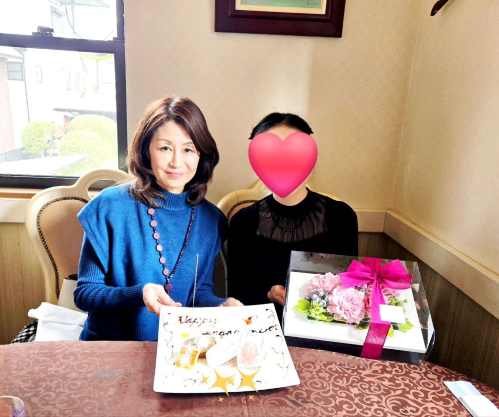 親御さまたちもとても喜んでくださっているそうで、 12月後半には京都ブランヴィアで行われたお顔合わせのお写真も拝見しましたが、ご両家ともに和やかで、温かな雰囲気が伝わってきました。