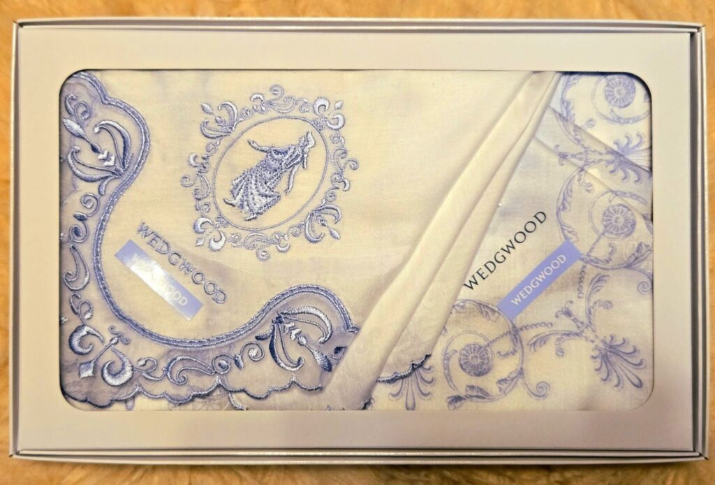 彼女からは、Wedgwoodの素敵なハンカチをいただきました。