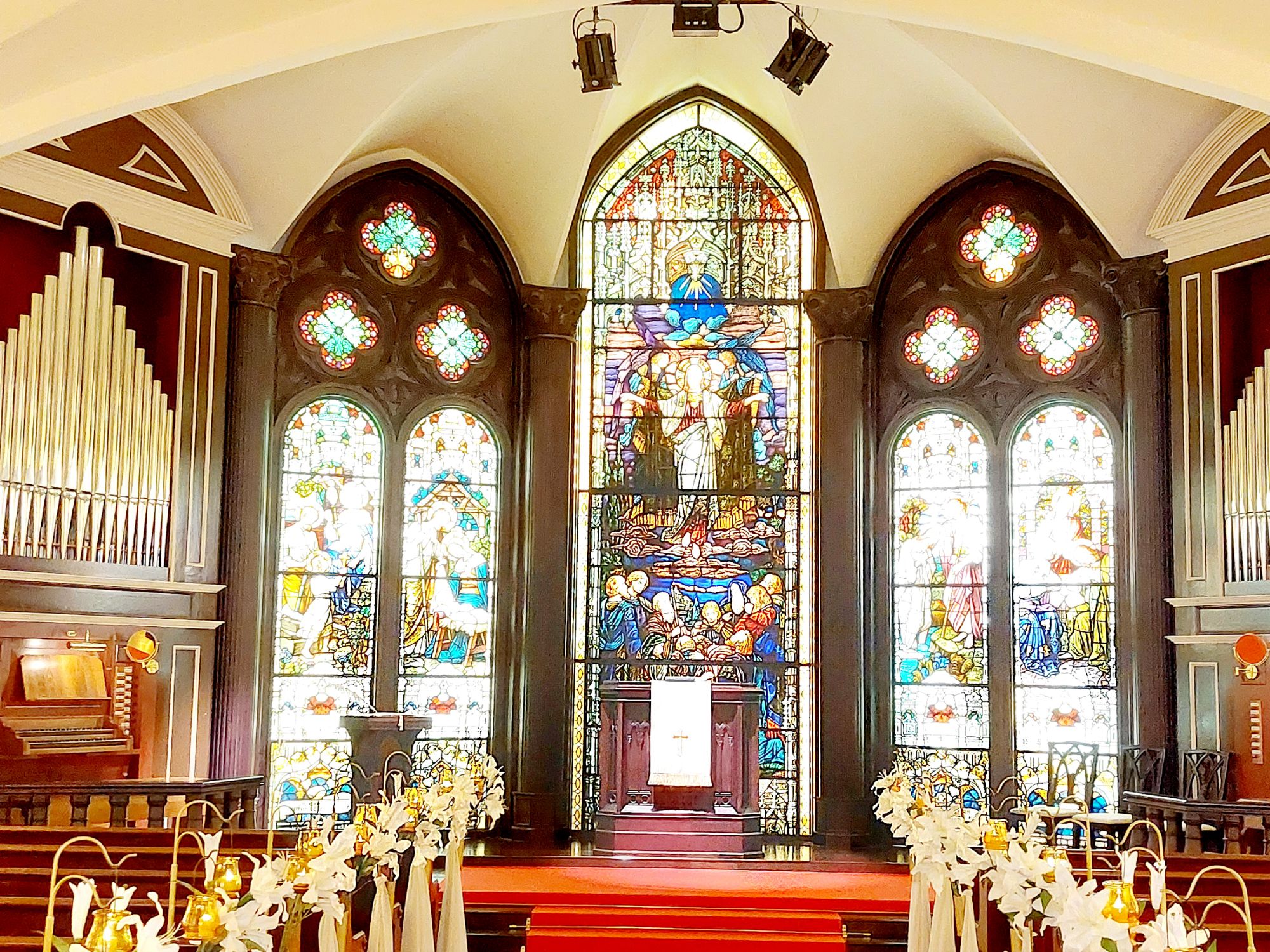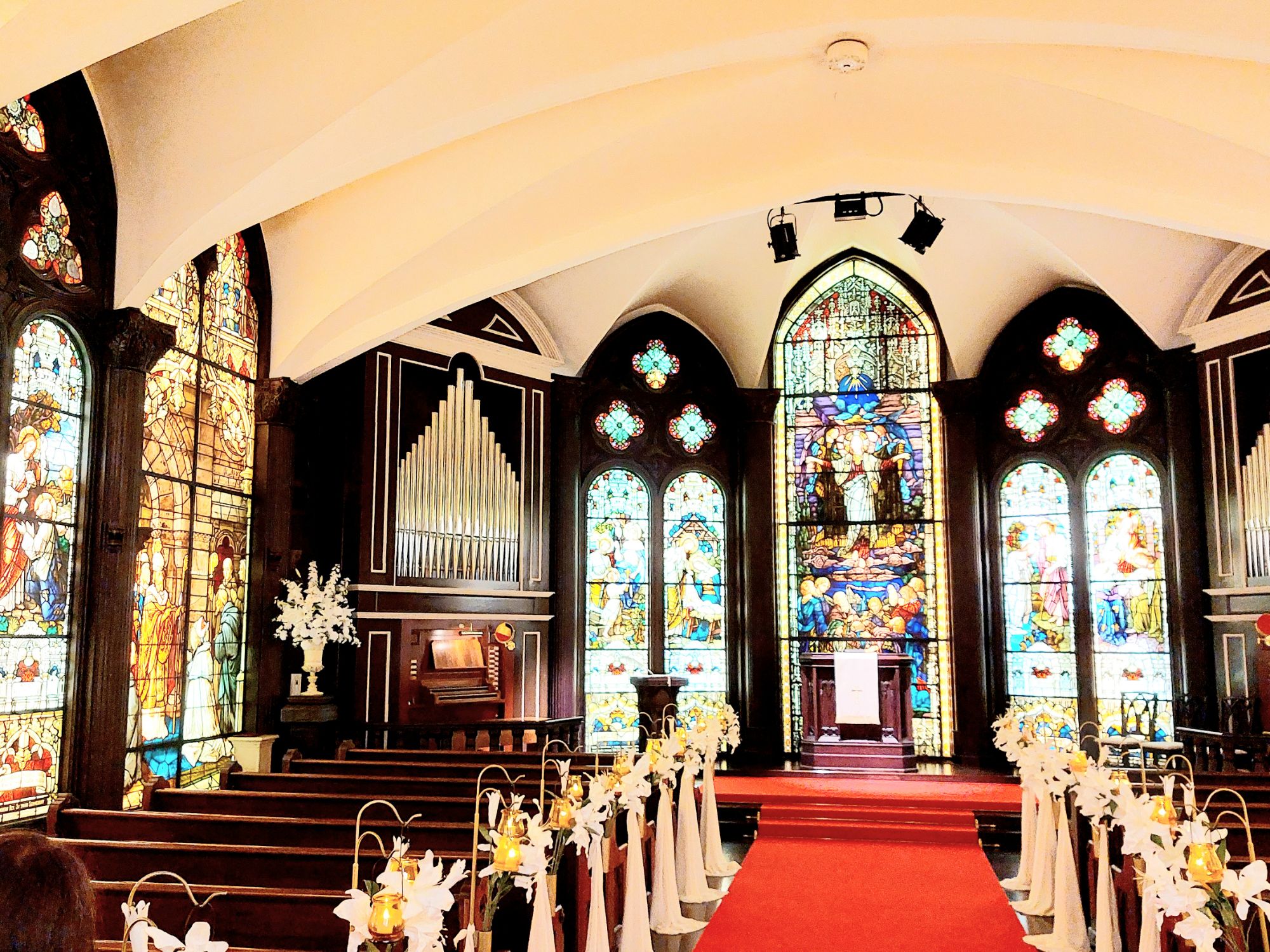 ここのセント・ラファエロチャペルは、ヨーロッパで200年前に作られたステンドグラスで360度囲まれており、