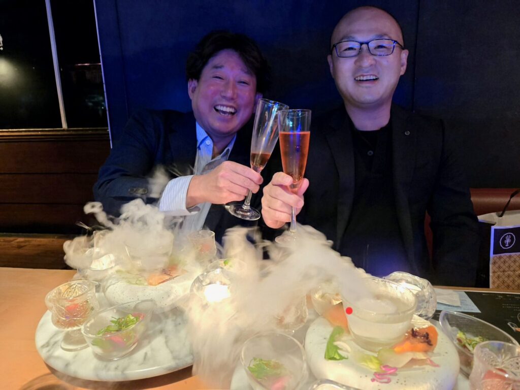 合同のお祝いのお食事会を、堀江ブルーでさせていただきました。