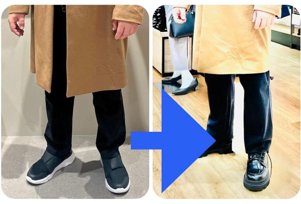 明るいコートには「パンツと靴色」を近づけることをお勧めします。